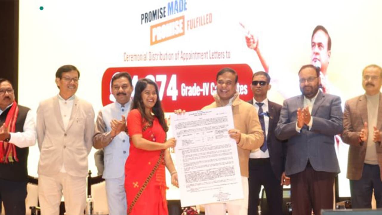 Assam CM Himanta Biswa Sarma distributed 4,369 appointment letters for Grade IV posts under the ADRE. This brings the total number of government jobs provided during his tenure to 1,50,033, surpassing the 2021 election commitment.