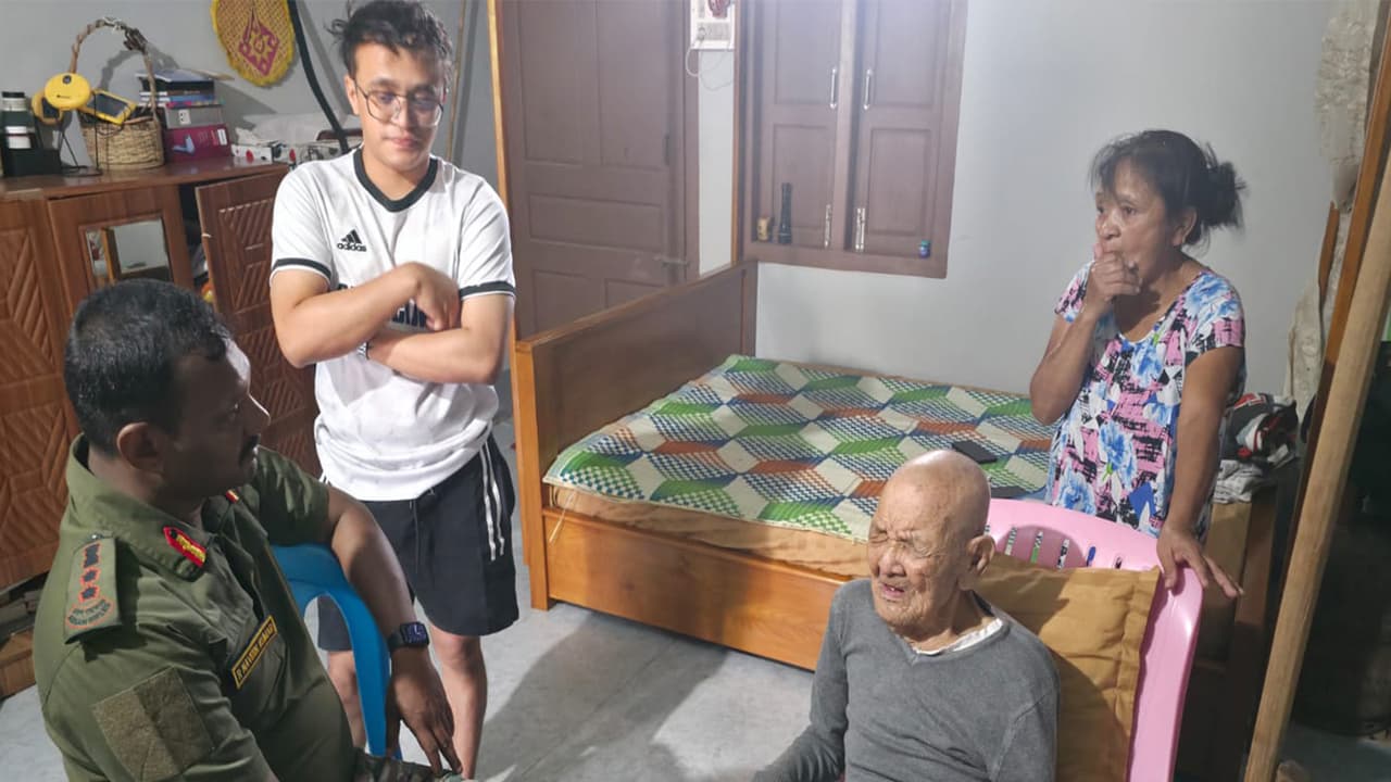 Assam Rifles paid a heartfelt tribute to one of its oldest living veterans at Moreh in Tengnoupal District. Senior officials visited 104-year-old Rifleman Shatri Dhan Thapa (Retd), a distinguished veteran of 4 Assam Rifles and a resident of Moreh, to acknowledge his exemplary service and enquire about his well-being, according to a release.