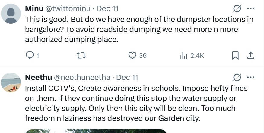 While many appreciated the swift action, the incident also triggered frustration among residents who have long complained about illegal waste dumping across Bengaluru.