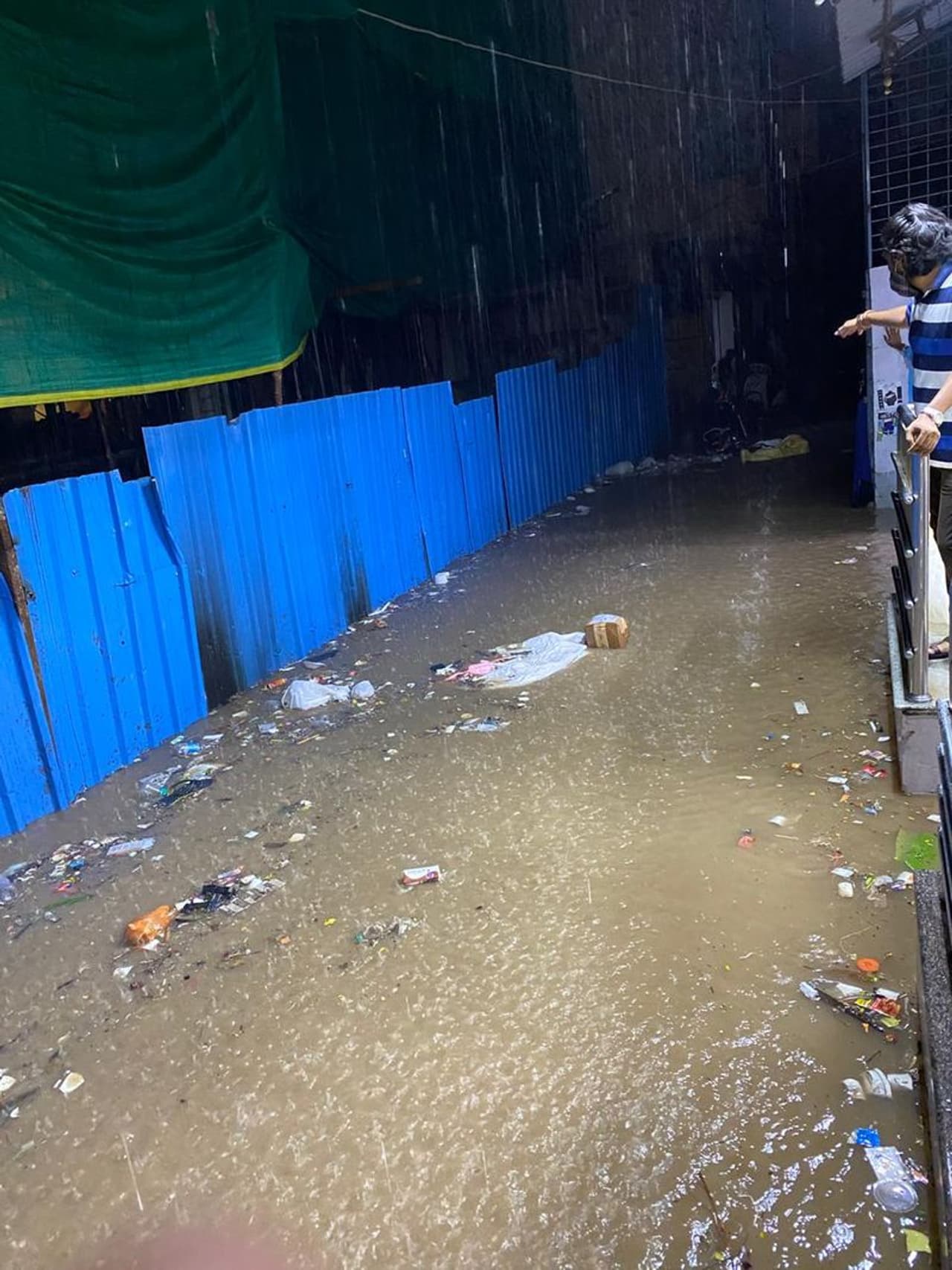 The roads were filled with water above knee level, and many two wheelers parked were seen almost completely submerged.
