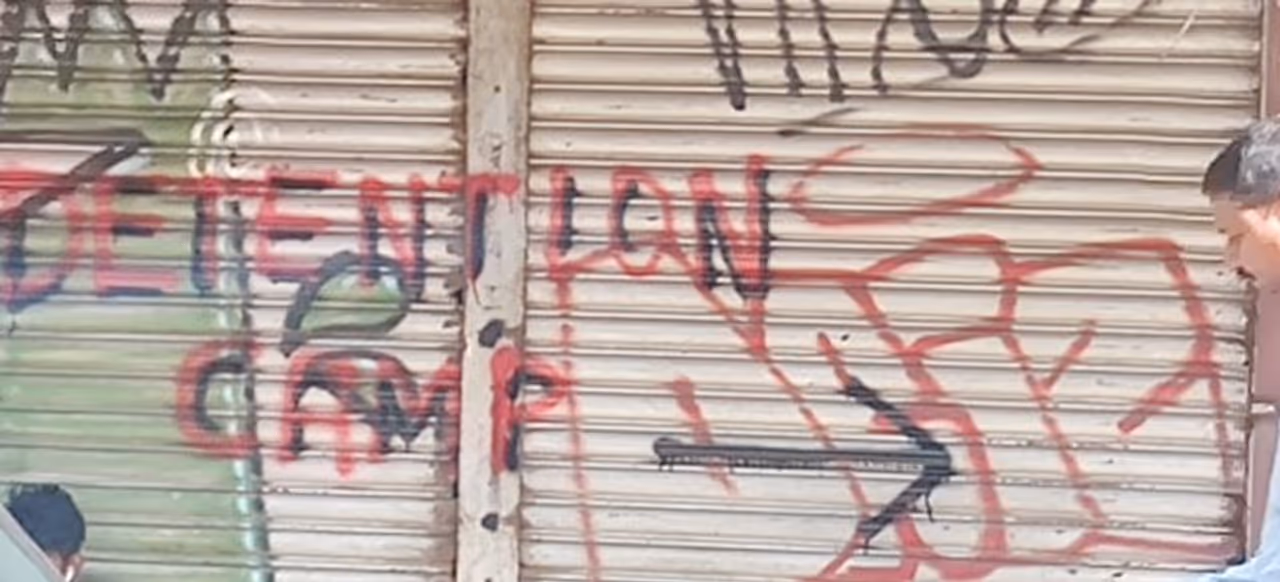 Bengaluru: After 'Free Kashmir' posters in Mysuru campus during students agitation, now miscreants have painted few shutters of shops lining the Church Street in Bengaluru, Karnataka.