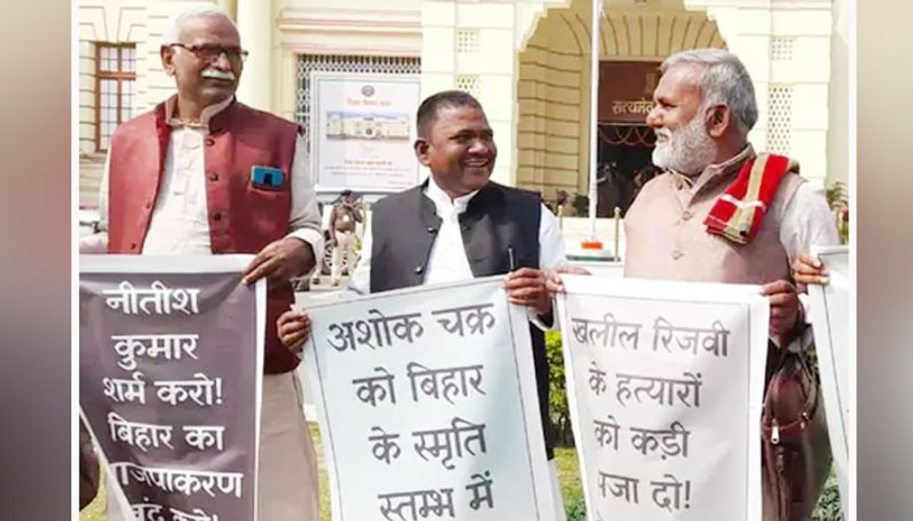 Congress MLA Shakeel Ahmed: Shakeel Ahmed Khan, a Congress MLA, arrived with a placard depicting a hostile atmosphere for the session. He claimed that a member of the minority community was brutally murdered in Samastipur Musrigharari. In support of the minority community, the leader refused to attain the first day of the budget session.
