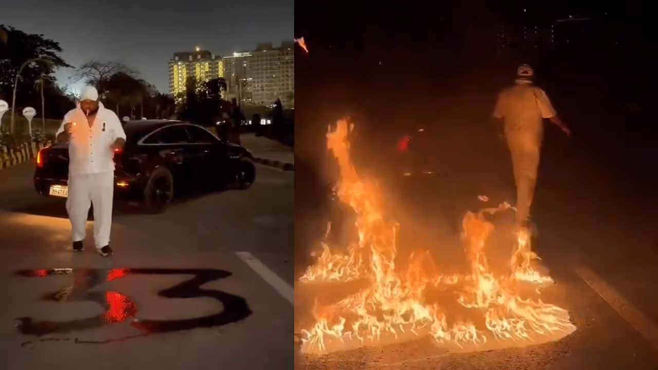 A 33-year-old Mumbai car dealer was arrested by the Goregaon Police after a dangerous birthday stunt went viral. The man reportedly lit a fire in the shape of the number "33" for a social media clip by pouring flammable liquid on a public road outside. The conduct created a serious fire danger and damaged the road's surface in many places.