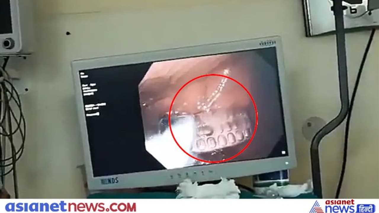Doctors performed an endoscopy to bring out the mobile, 7 cm long and 3 cm wide, through the mouth with the help of a snare.