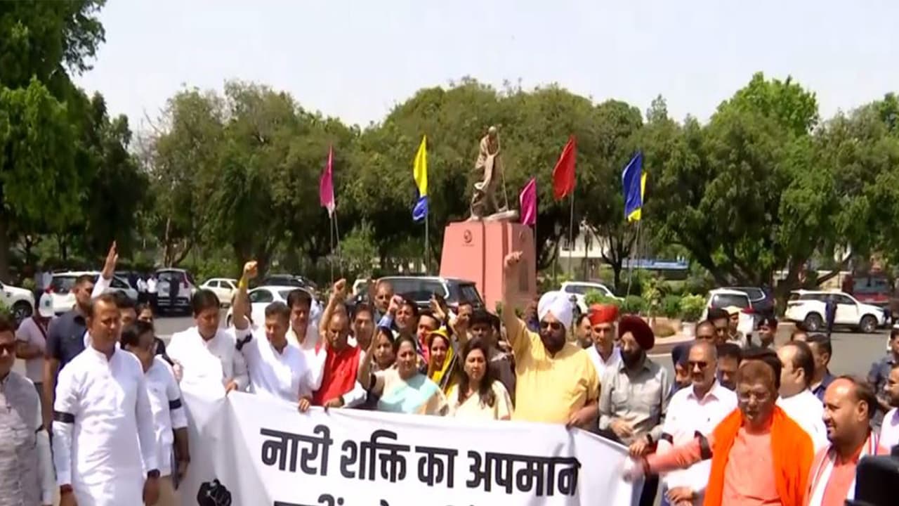 Delhi minister Manjinder Singh Sirsa, who was present at the protest, accused the Congress of denying women their rights and said a censure motion would be brought over the issue. Speaking to ANI, Sirsa said, "Congress has snatched away the rights of half of India's women. Regarding the betrayal of women, a Censure Motion will be brought in today. Women's reservation is necessary."