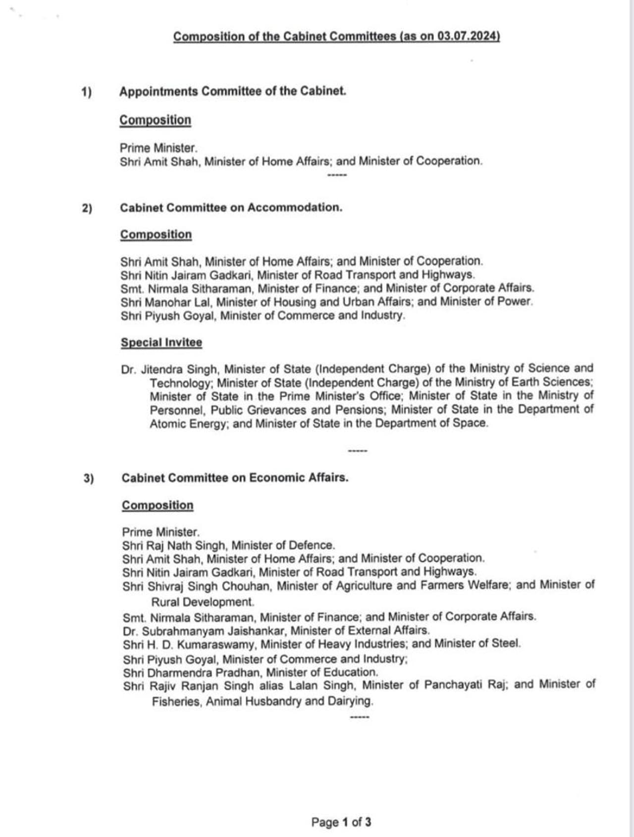 The Modi government on Wednesday established several key cabinet committees, pivotal for decision-making across security, economic, and political domains.