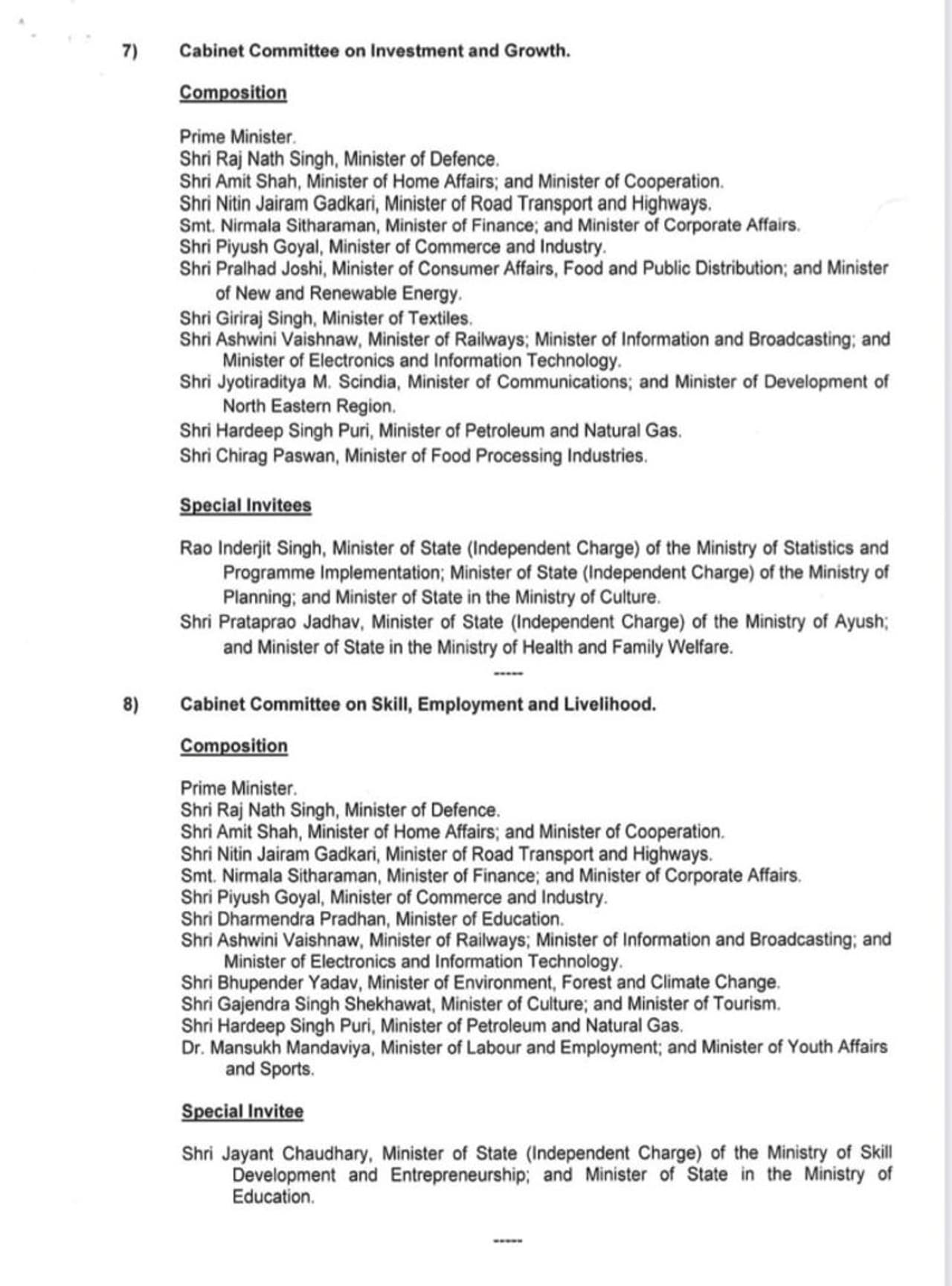 Additionally, the Cabinet Committee on Economic Affairs includes the above members along with Road Transport and Highways Minister Nitin Gadkari, Agriculture Minister Shivraj Singh Chouhan, and Heavy Industries and Steel Minister H D Kumaraswamy. Also included are Commerce Minister Piyush Goyal, Education Minister Dharmendra Pradhan, and Minister of Panchayati Raj and Fisheries Rajiv Ranjan Singh alias Lalan Singh.