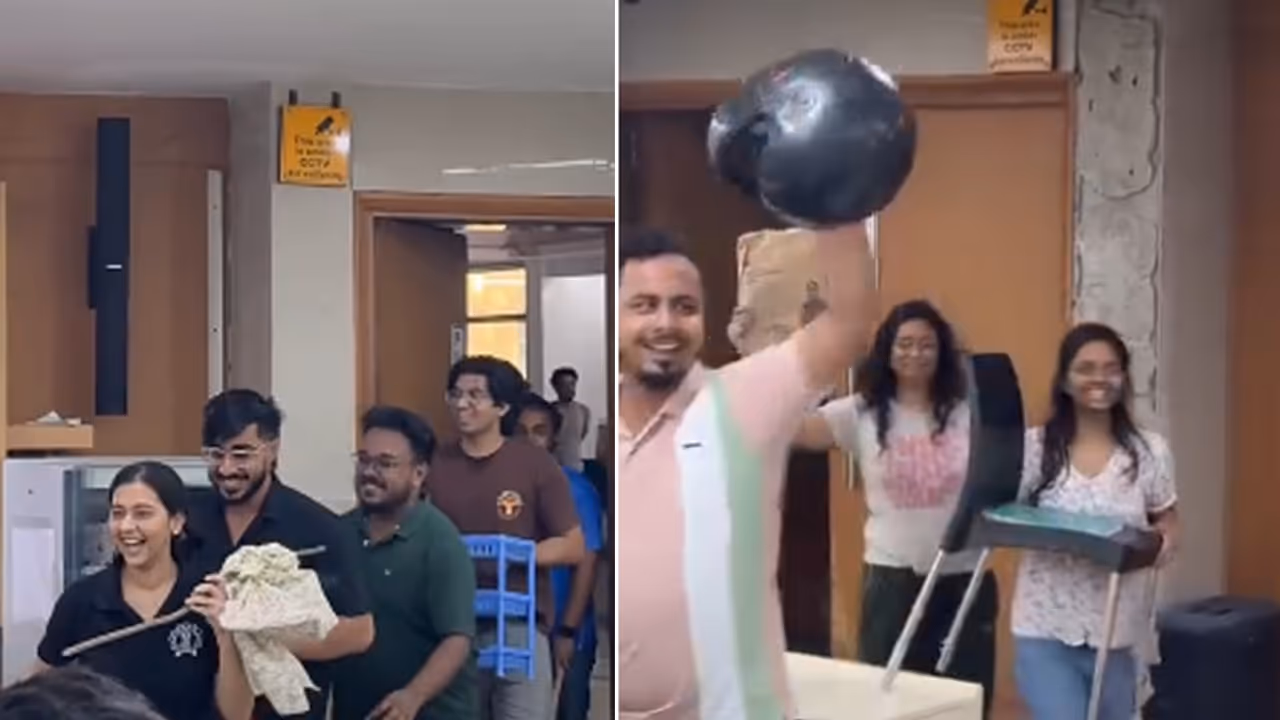 On their final day of lectures, IIT Bombay students celebrated a "No Bag Day," using creative alternatives like buckets, chairs, and even a bicycle to carry their belongings. The viral video of the spectacle concluded with a surprise visit from a stray dog, adding to the memorable and fun atmosphere.