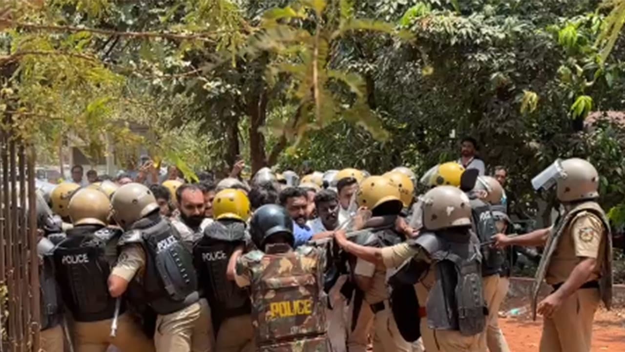 A clash broke out in Kannur on Wednesday during a Youth Congress march to Ancharakandi Dental College, where protesters were demanding action in connection with the death of student Nithin Raj. Protesters overturned barricades, breached the police cordon and entered the college campus, leading to a confrontation with police personnel. During the incident, the window panes of the college building were damaged. Police intervened and detained several activists, removing them from the premises.
