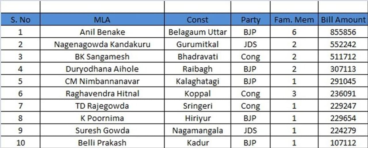 The medical bills of these MLAs and their families run into lakhs. Ten MLAs and their family members’ hospital bills sum up to around Rs 35 lakh.