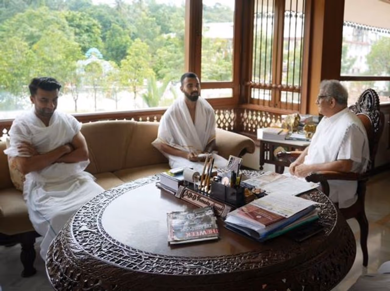 Indian cricketer KL Rahul was recently seen visiting Shri Dharmasthala Manjunatheshwara temple, offering prayers to Lord Manjunatha. He is currently recovering from the thigh surgery which took place in the United Kingdom.