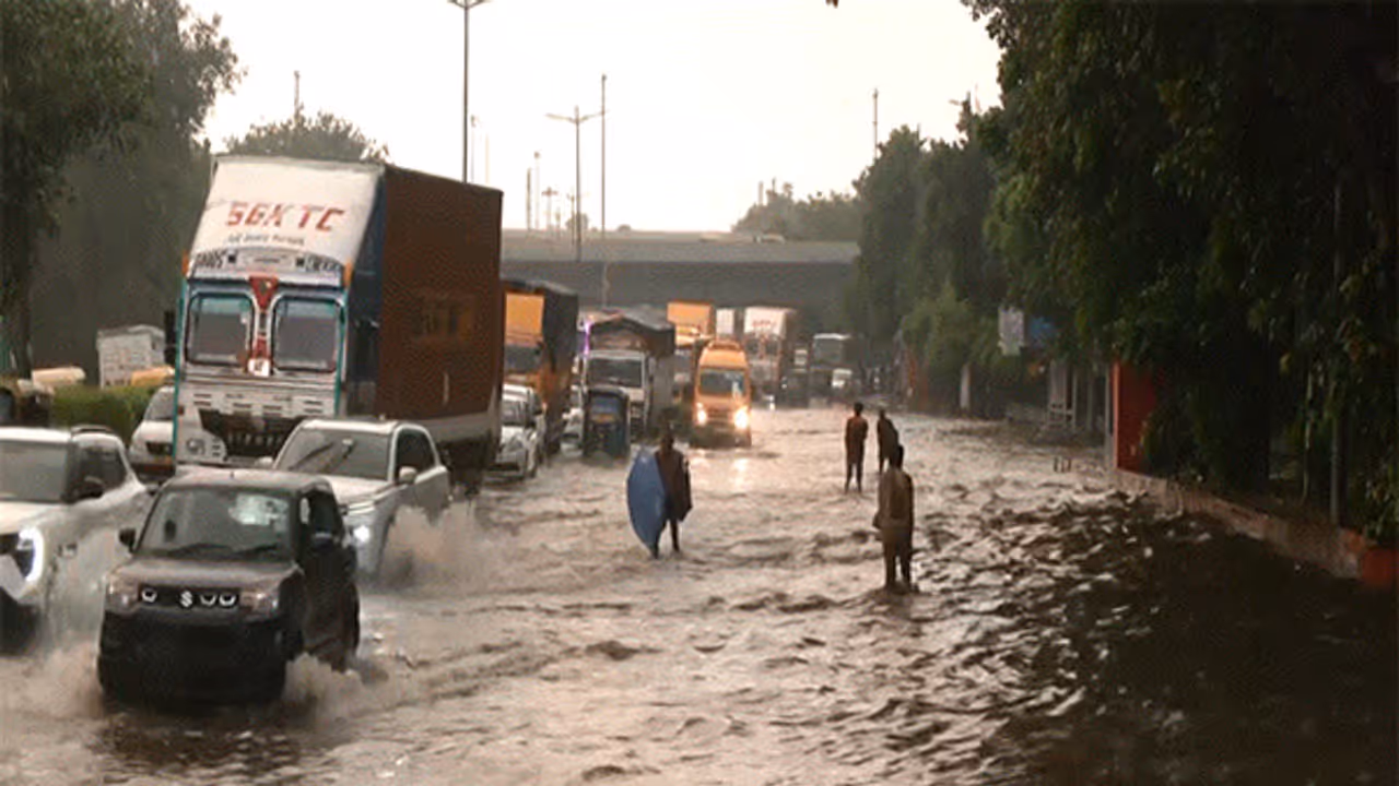 Delhi continues to grapple with waterlogging and signs of possible flooding. Today, early morning visuals from Loha Pul and nearby areas showed the expanded Yamuna River that continues to wreak havoc following heavy and continuous rainfall. Severe waterlogging was witnessed as the water from the overflowing Yamuna River entered parts of the national capital. Visuals show the waterlogged roads of Delhi's Monastery Market area.