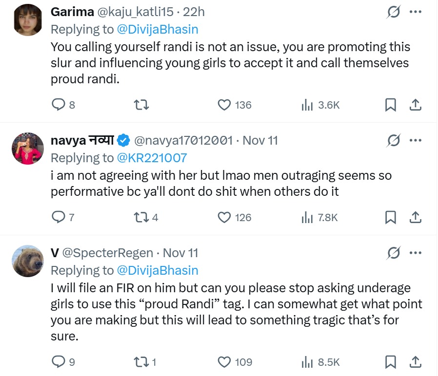 In a post on X, Gupta wrote, "I have filed a formal complaint for an FIR to UP Police against @DivijaBhasin for influencing minors to use inappropriate slurs and provoking them to indulge in such professions, which are offences under POCSO and various sections of Indian law." While there has been no confirmation yet of formal charges being filed, the post has been widely circulated online, with many tagging the police and demanding action.