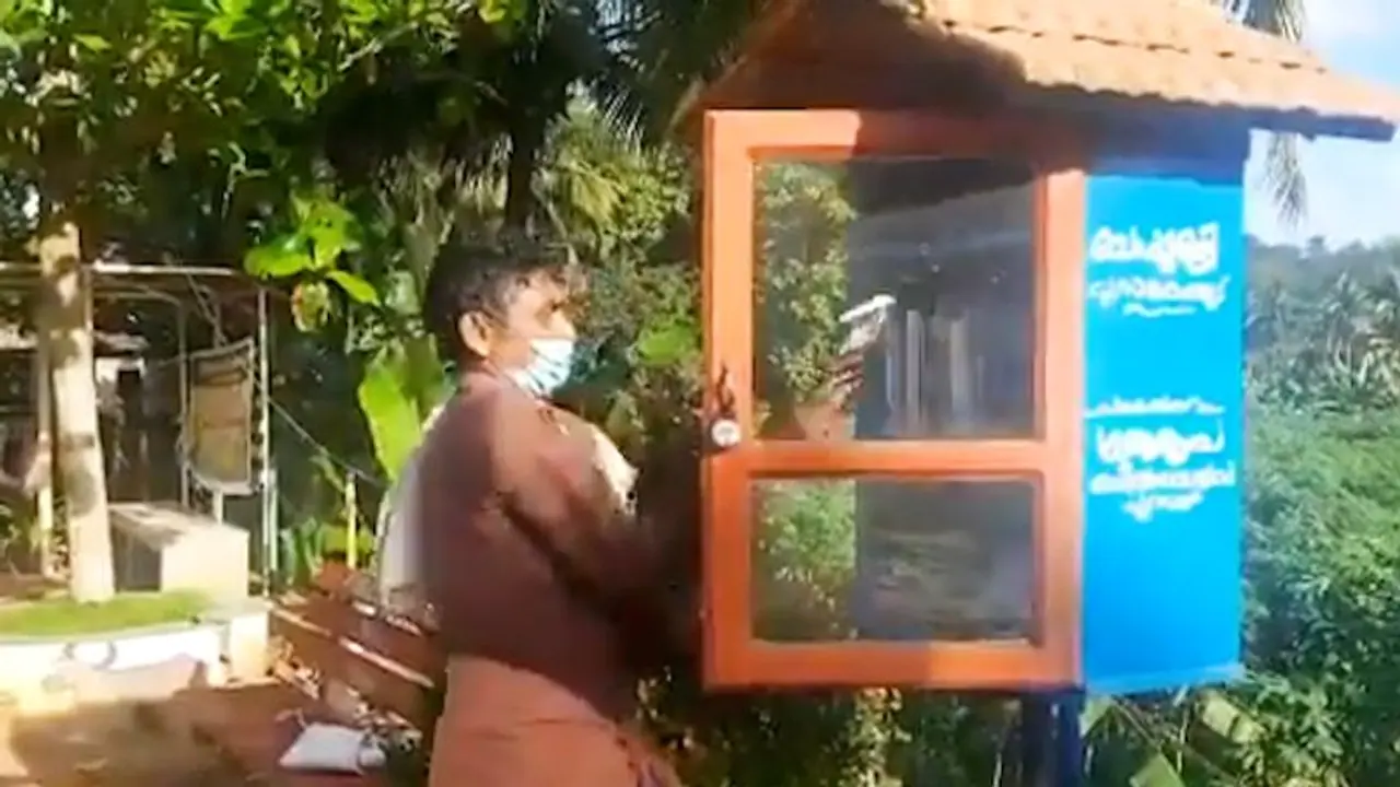 Perumkulam is known to be the first book village in the state. In the video, a man walks towards a book rack on the roadside and opens up the rack where several books are stacked.