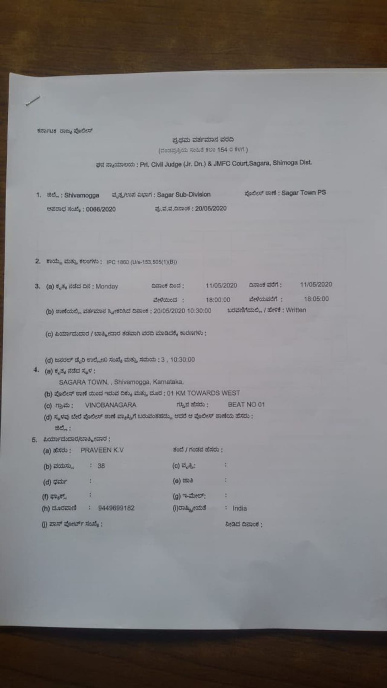 Praveen has sought criminal action against Sonia Gandhi. The police have registered the case under IPC sections 153 and 505 (1)(B).