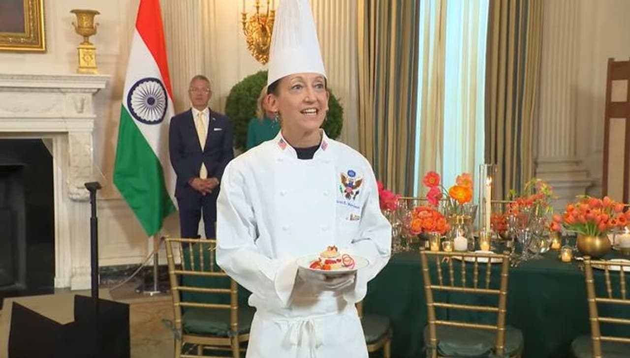 The State Dinner, hosted in honor of Prime Minister Narendra Modi, will feature a 'vegetarian' menu. The carefully curated menu includes delectable dishes such as marinated millet and grilled corn kernel salad, compressed watermelon with tangy avocado sauce, stuffed portobello mushrooms, and creamy saffron-infused risotto.