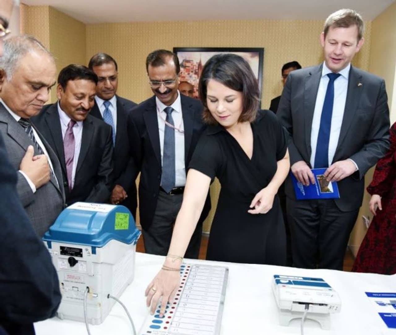 German Foreign Minister Annalena Baerbock on Tuesday visited the Election Commission of India and met the Chief Election Commissioner Rajiv Kumar, who showed the visiting dignitary the polling body's rigorous protocols and security features in Electronic Voting Machine-VVPAT usage.