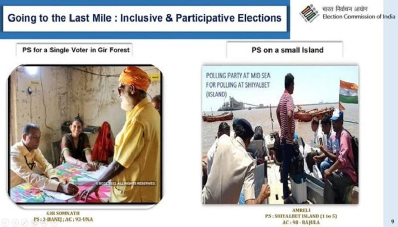 "A shipping container at Aliabet with AMF for 217 voters. Polling station for a single voter in Gir Forest. A team of 15 election officials will visit to conduct an election for the single voter." the Election Commission said.