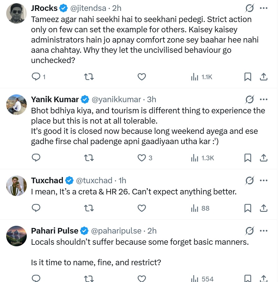 The incident reopened a larger debate about unregulated tourism in Himalayan states like Himachal Pradesh and Uttarakhand. Several users pointed out that reckless behaviour by a small group of tourists often leads to tension between locals and visitors.