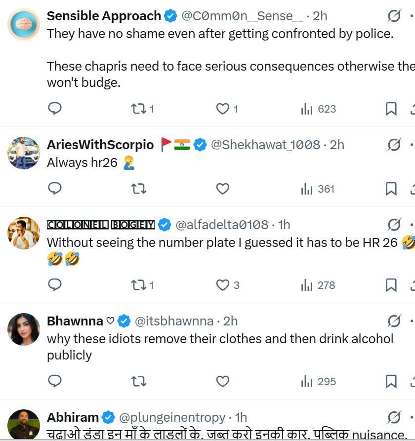 Other users demanded strict punishment, including heavy fines, vehicle seizure, and legal action under public nuisance and drunk driving laws.