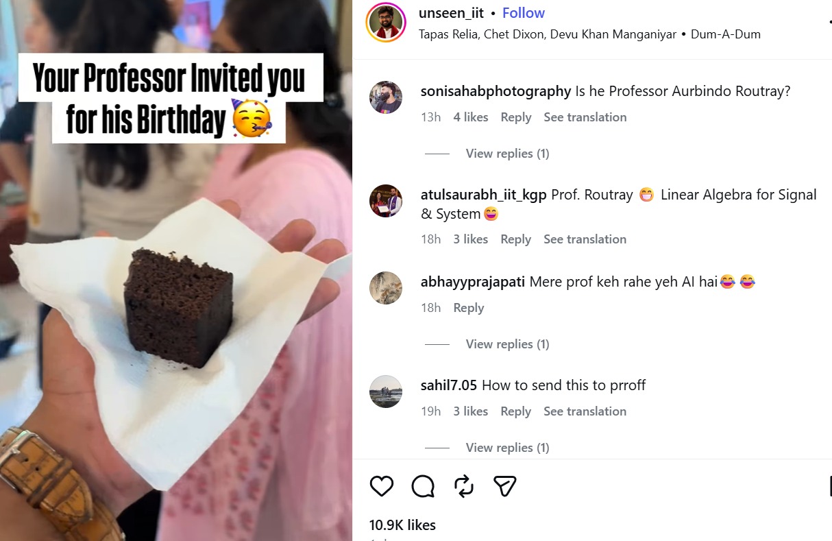 A video from IIT Kharagpur showing Professor Aurobinda Routray celebrating his birthday with students has gone viral online. The professor not only cut a cake but also personally served food to his students in a garden setting. The warm gesture impressed social media users, with many praising his kindness and recalling similar memories.