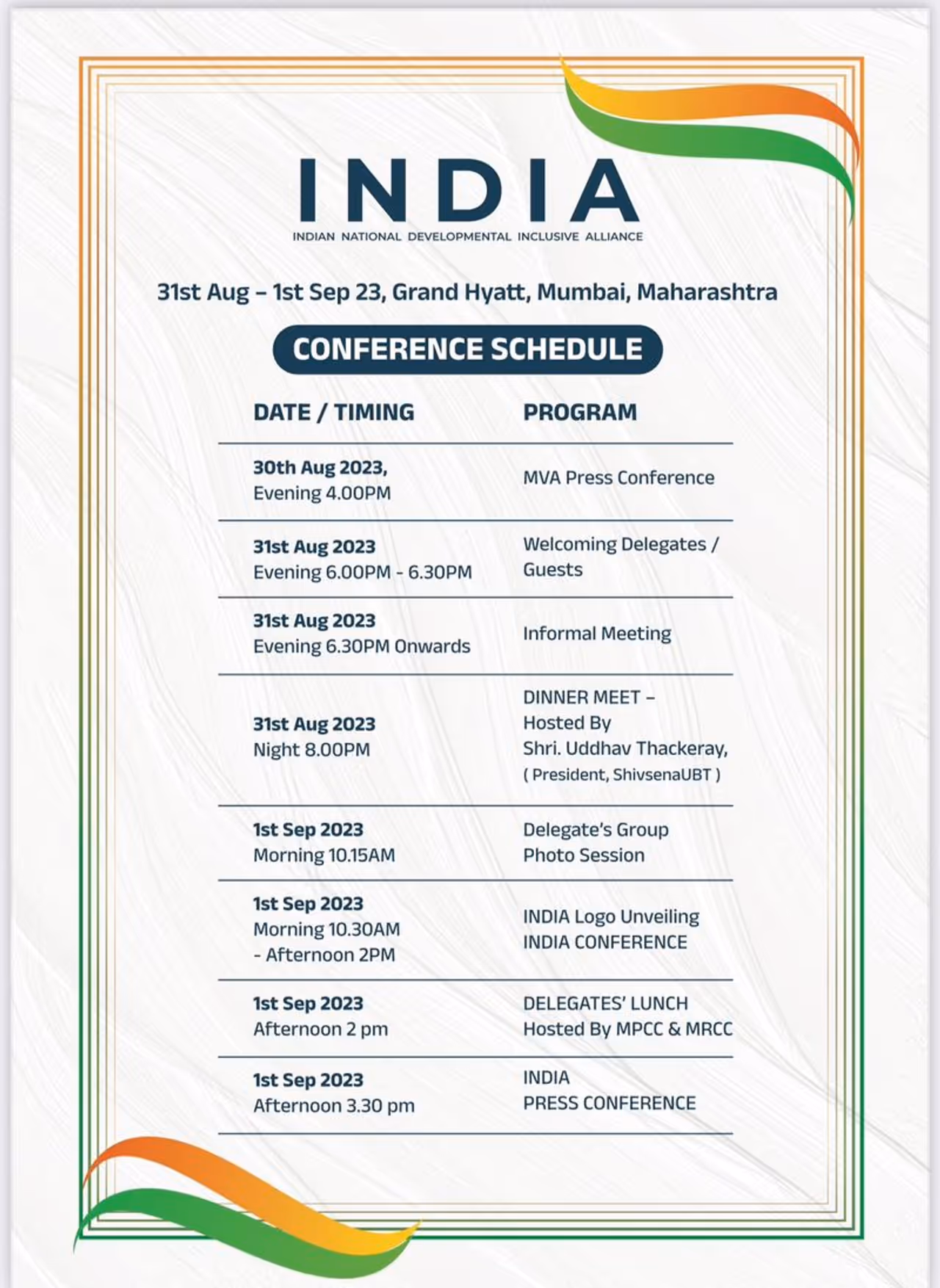September 1, 2023 10:30 AM-Afternoon 2 PM: INDIA Logo Unveiling, INDIA CONFERENCE