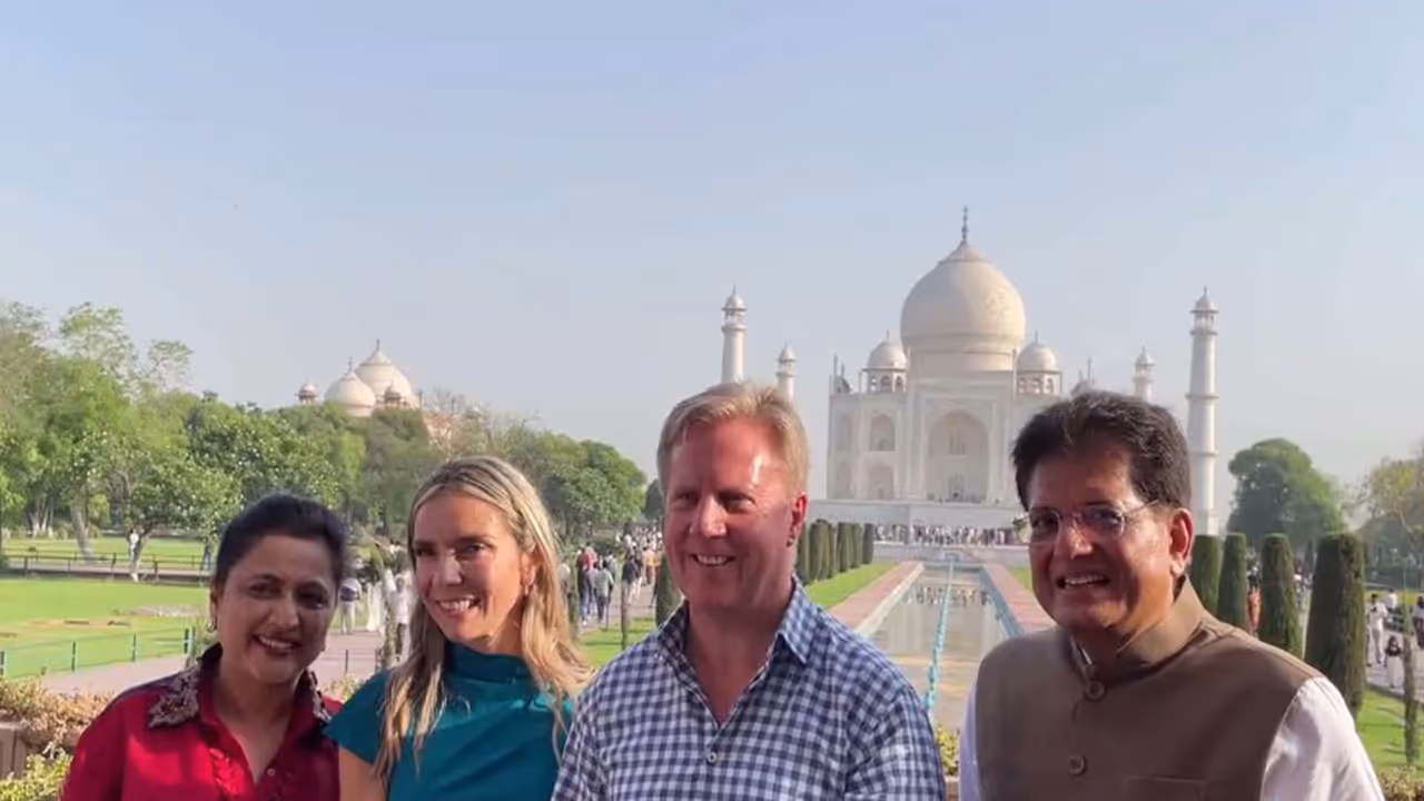 Union Minister of Commerce and Industry Piyush Goyal and New Zealand's Minister for Trade and Investment Todd McClay on Sunday visited the Taj Mahal in Agra, Uttar Pradesh, with their spouses, Seema Goyal and Nadine McClay. The minister's visit to the monument comes a day before both countries are set to sign the Free Trade Agreement (FTA) on April 27.