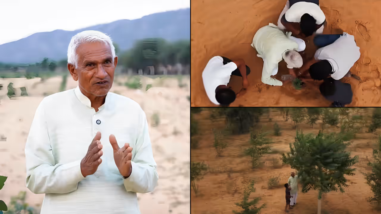 Sundaram Verma, a Padma Shri farmer from Rajasthan, has grown over 60,000 trees using just one litre of water per plant. By trapping monsoon moisture through deep ploughing, his method saves water and helps trees survive drought.