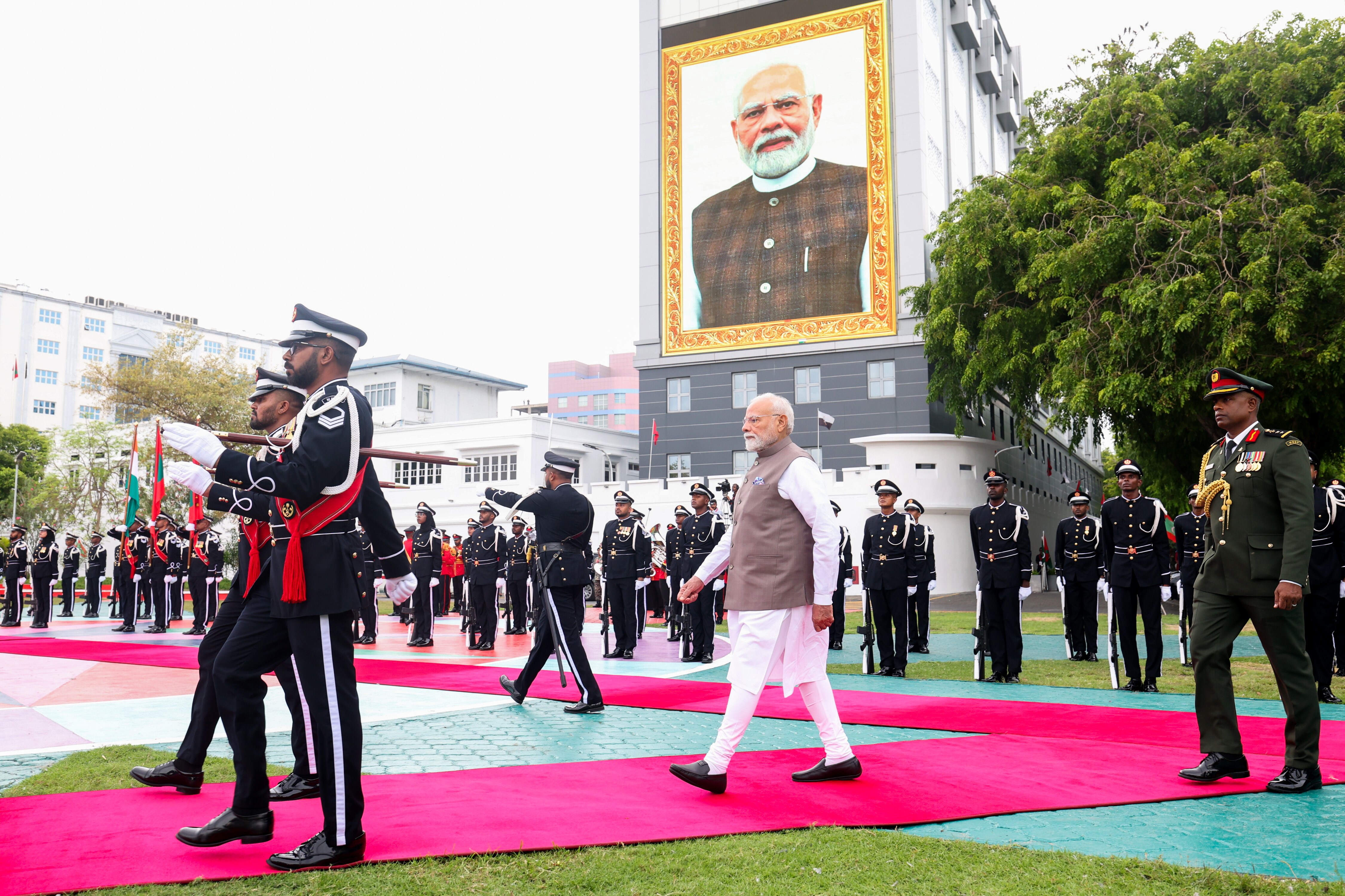On July 25, 2025, Prime Minister Narendra Modi received a grand welcome in the Maldives. He was greeted with a 21-gun salute and a ceremonial reception at Republic Square in Male. Children performed cultural dances and waved Indian flags. His giant photo was even displayed on the Ministry of Defence building.