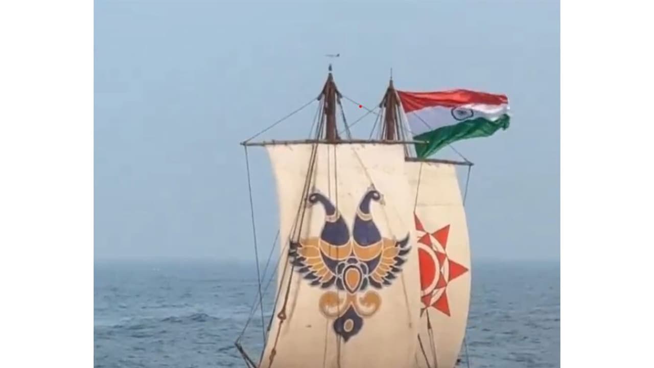 INSV Kaundinya, the Indian Navy's indigenously built traditional stitched sailing vessel, continues its maiden overseas voyage after setting sail from Porbandar, Gujarat, on December 29, bound for Muscat in the Sultanate of Oman. The expedition marks a major milestone in India's efforts to revive, understand and celebrate its ancient maritime heritage through a living ocean voyage. Built using traditional stitched shipbuilding techniques and natural materials, Kaundinya is inspired by historical sources and iconographic evidence of ancient Indian ocean-going vessels. (ANI)