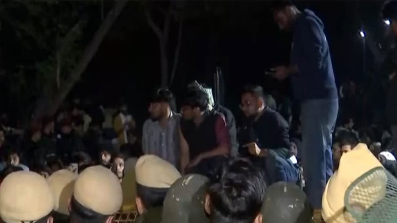 "During the protest, barricades were damaged, and the demonstration turned violent. Protestors pelted banners and sticks, threw shoes, and even physically assaulted Delhi Police personnel, including biting. As a result, several police personnel were injured. The protestors were stopped and contained at the North Gate of the JNU campus and were gradually moved back inside. Those who became violent and did not obey lawful orders were detained. Further details will be shared in due course," Delhi Police said.