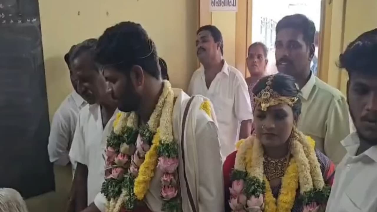 Ravi Rahul, a resident of the Aram Valartheeswarar Temple area in Kanchipuram, is a construction engineer who runs a house-building firm. He married Sivaranchani, also a civil engineer from Virudhachalam, earlier this morning in Kanchipuram. Soon after the wedding, the newlywed couple went together to a nearby private school serving as a polling booth. Dressed in their wedding attire, Ravi Rahul exercised his democratic right and cast his vote alongside his bride.
