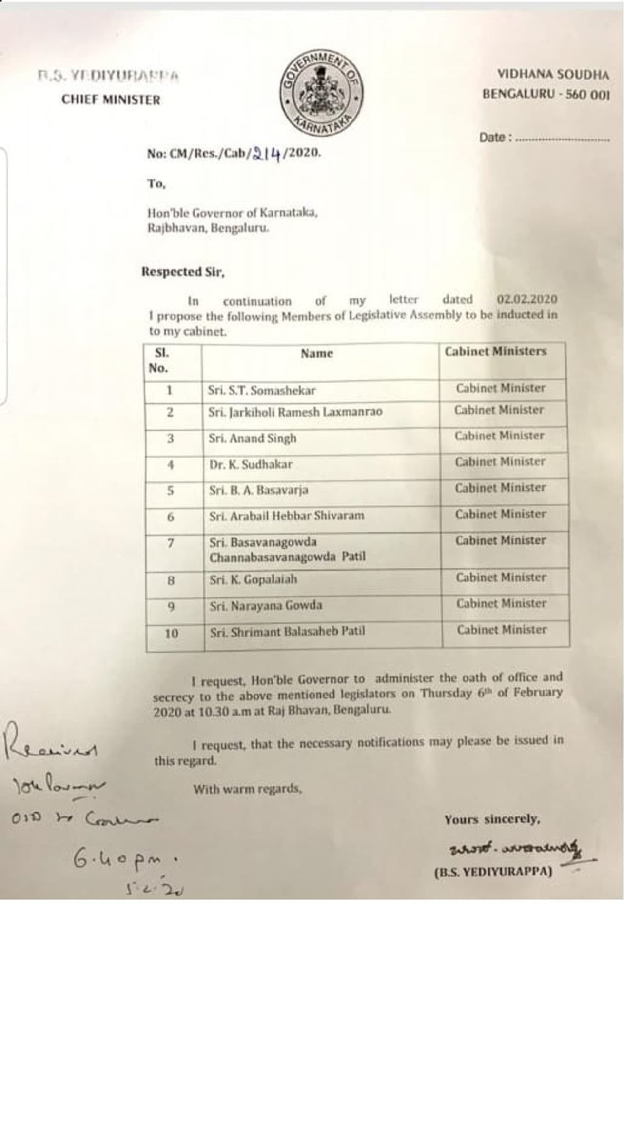Bengaluru: With the much-awaited Karnataka Cabinet expansion finally scheduled for Thursday after much squabbling, as many as 10 defectors who had won the bypolls in December on BJP tickets after switching loyalties from Congress and JDS are set to take oath as ministers today.
