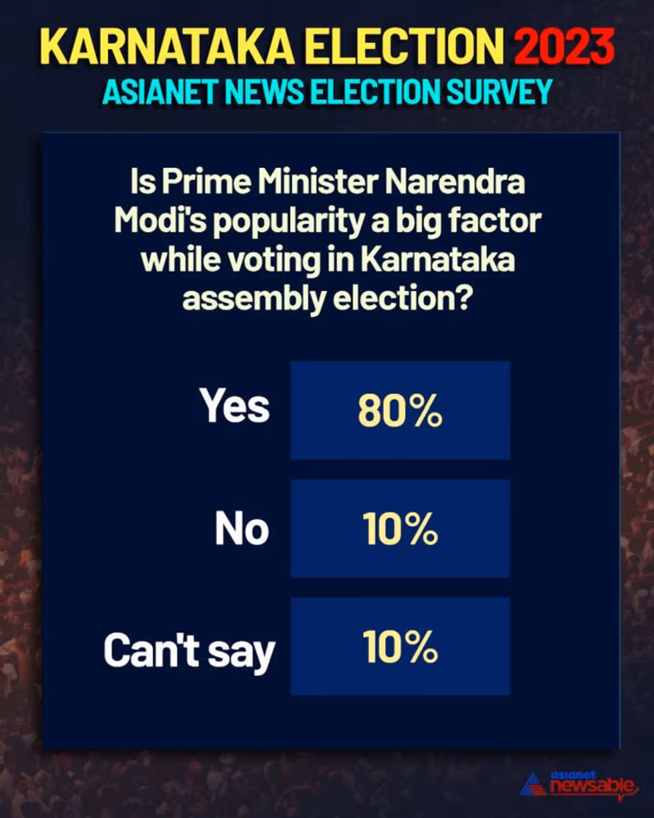 The Narendra Modi factor is key to Bharatiya Janata Party's success in the Karnataka Assembly election, and will be the biggest factor that could contribute to the saffron party getting a second term in the state, the latest opinion poll commissioned by Asianet News and conducted by Jan Ki Baat has found.