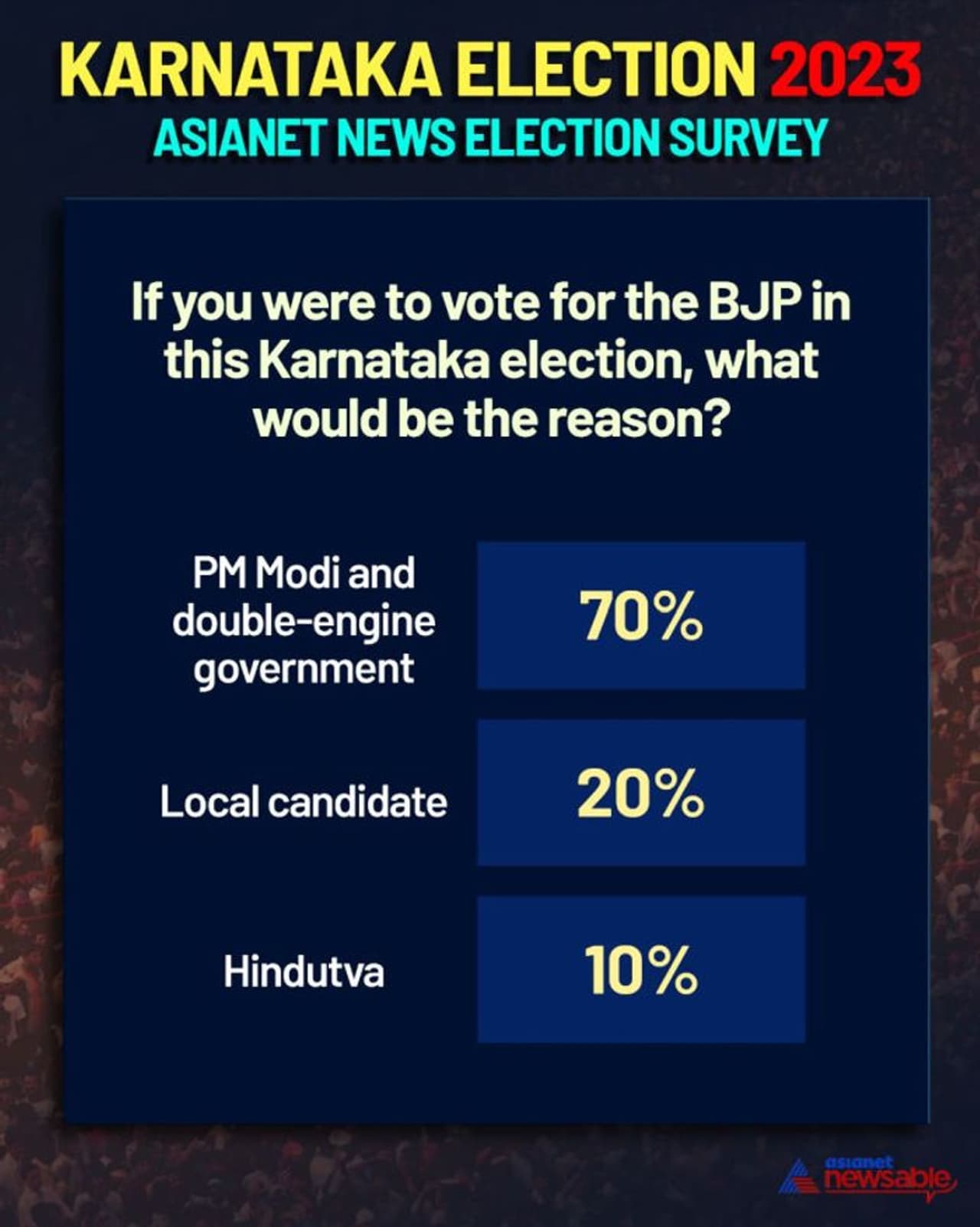 Another 70 per cent of the respondents voting for the BJP said that they desire the double engine government in the state, with Narendra Modi at the helm in the Centre. Only 20 per cent of respondents said that their vote for BJP would depend on the local candidate in their constituency.