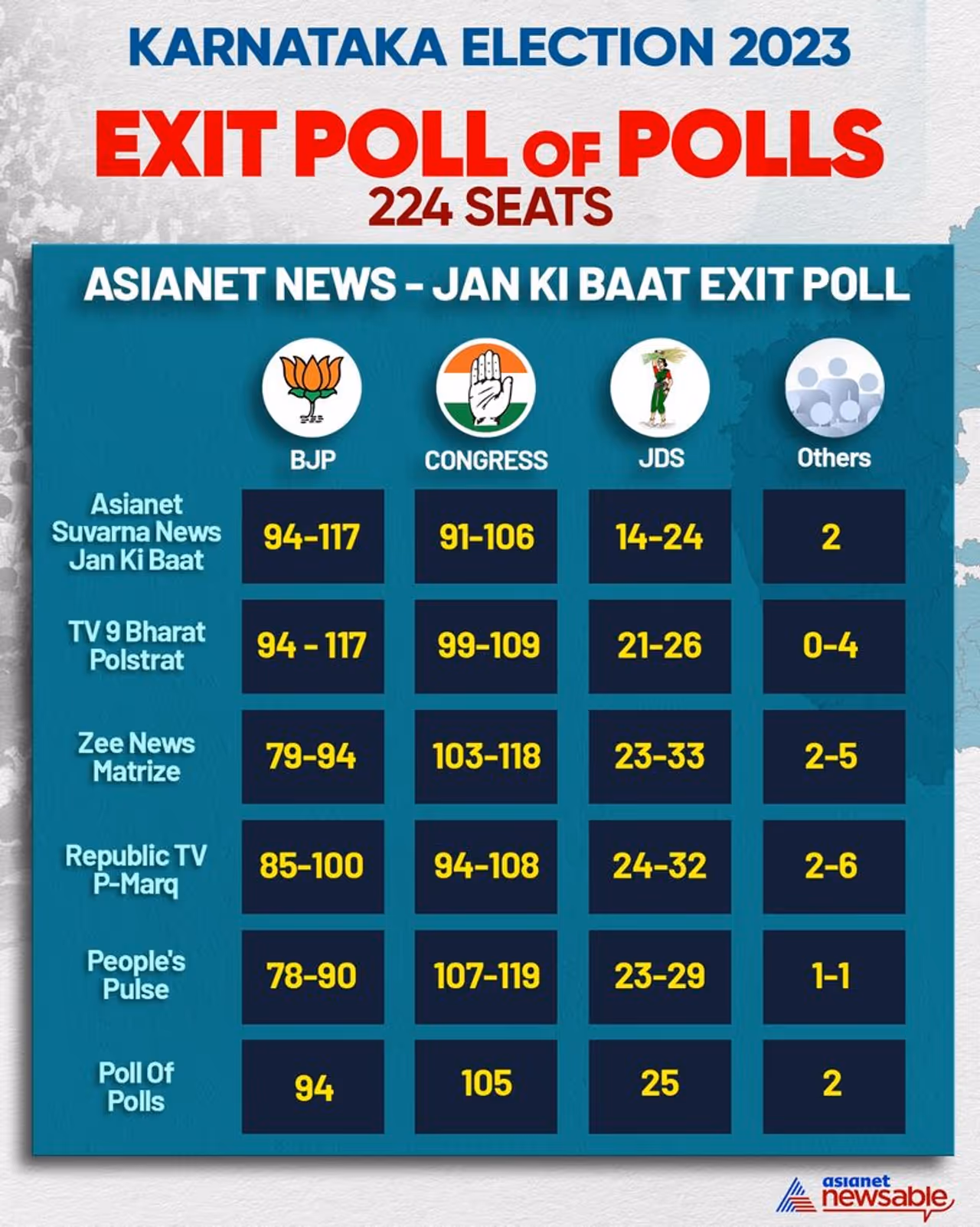 Also Read | Karnataka Exit Poll Results 2023: BJP, Congress set for photo-finish on May 13