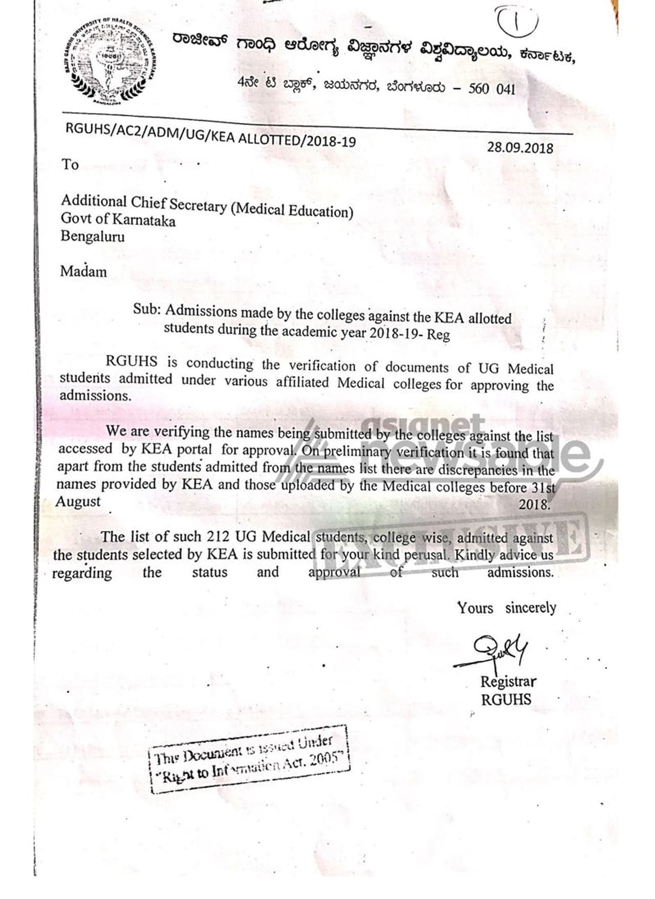 In 2018-2019, RGUHS reportedly found 211 such admissions done outside of the KEA list and has kept their enrolment on hold.