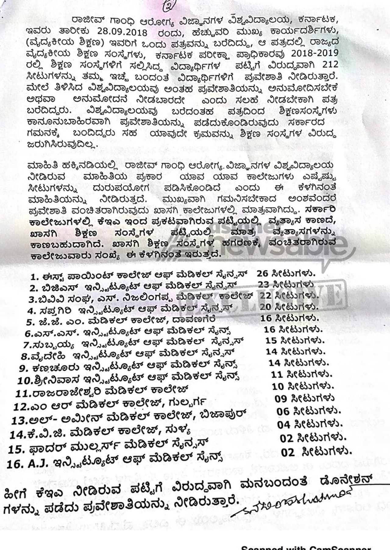 Speaking to Asianet Newsable, Nataraj Sharma said that as many as 210 medical seats have been sold to other students under the KEA quota in Karnataka in the academic year 2018-19, and 249 seats have been sold in the year 2017-18. He further said that CM Yediyurappa has considered to take up this issue and has forwarded the same to the concerned department for verification.