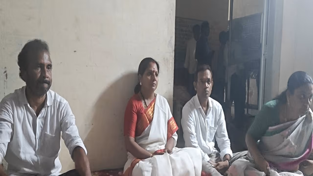 Kalvakuntla Kavitha, President of Telangana Jagruthi, on Monday, expressed solidarity with families affected by the alleged demolition of houses in Velugumatla village in Khammam district. After meeting the affected families, Kavitha staged a sit-in protest along with them at the statue of BR Ambedkar located at the ZP Centre in Khammam city. She was joined by Visharadhan Maharaj and other supporters, demanding justice for the displaced residents. Police later intervened during the protest and detained the demonstrators for holding a demonstration without prior permission. The detainees were subsequently released after being served notices under Section 41 of the Criminal Procedure Code (CrPC).
