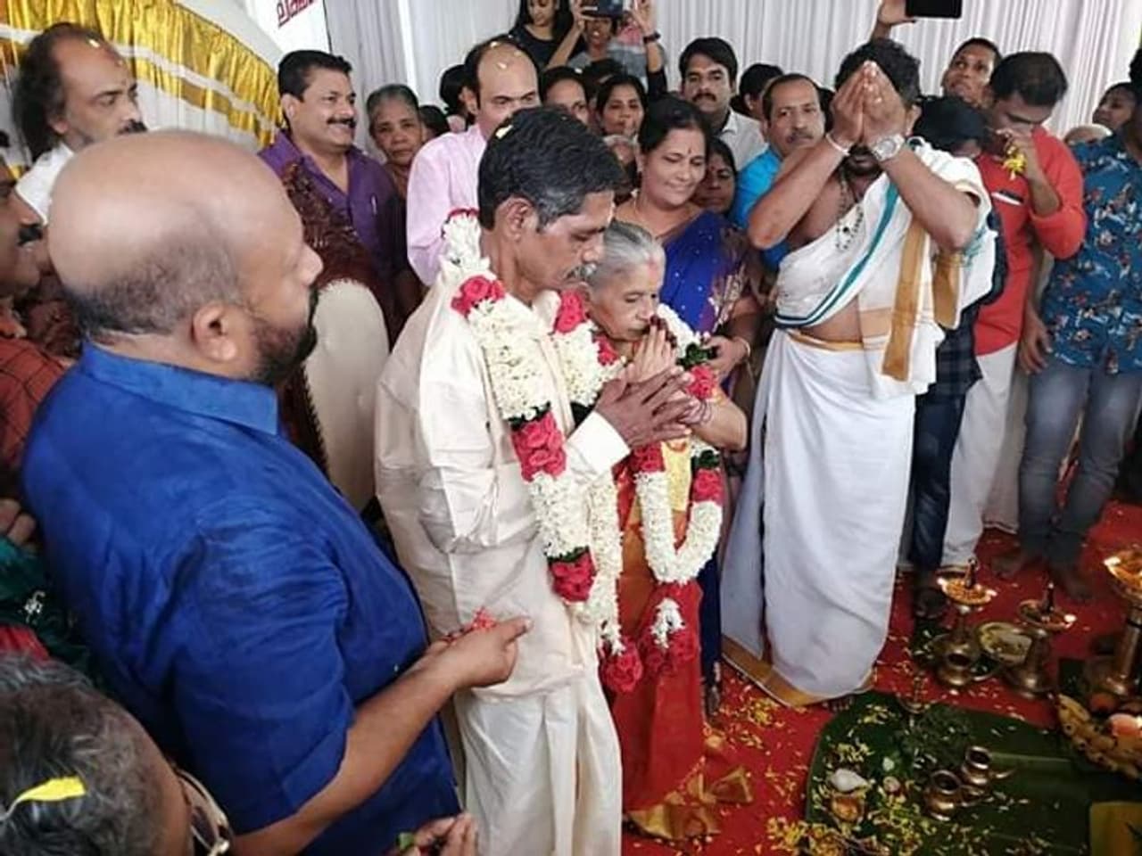 When old age home lovebirds' love story reached Kerala agriculture minister VS Sunil Kumar, he decided to join the wedding celebration. District collector S Shanavas also attended their wedding ceremony.