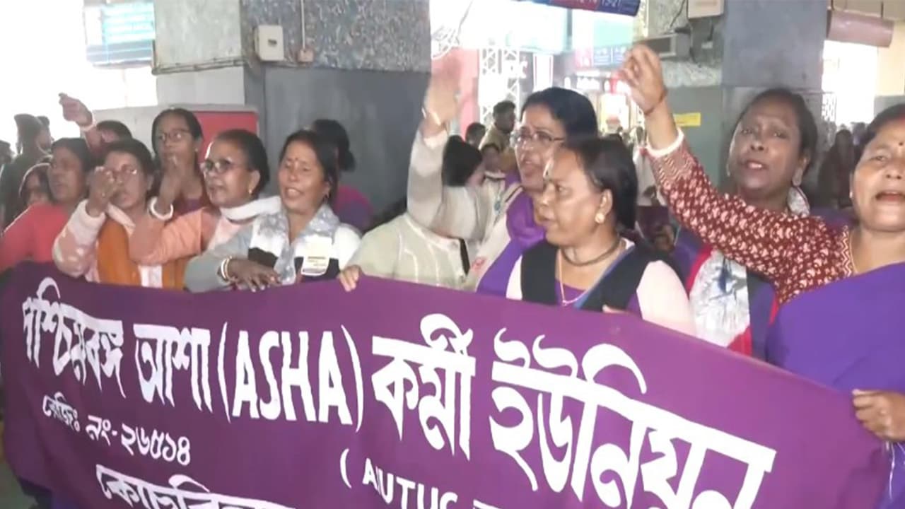 ASHA workers from across West Bengal staged a protest here at Sealdah railway station on Wednesday, demanding a fixed salary of Rs 15,000 per month, up from the current Rs 5,000, citing insufficient remuneration to meet household needs.