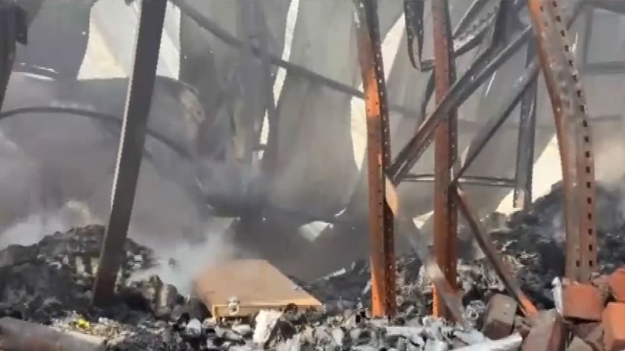 Visuals from the site of a fire at a manufacturing unit in the Anandapur area of Kolkata showed extensive damage to the structure a day after the incident. The footage showed charred remains of the building as fire tenders and police personnel continued to assess the situation and probe the cause of the fire. Smoke was still seen billowing from the premises as flames continued to burn inside parts of the structure, even though the fire had been brought under control.