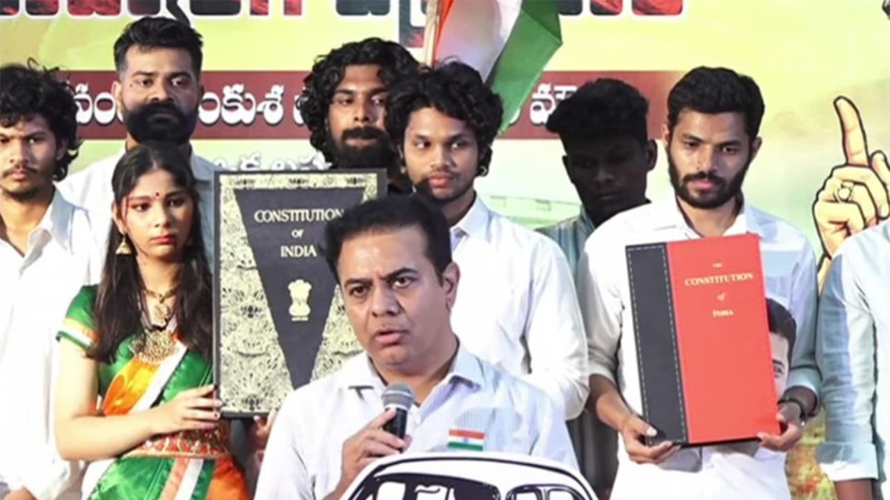 Bharat Rashtra Samiti (BRS) working president KT Rama Rao (KTR) criticised both the Congress-led Telangana government and the BJP-led central government, alleging breaches of the Constitution and undermining democratic values. KTR made the remarks during a skit on Constitutional rights staged by Central University students at the Republic Day celebrations in Telangana Bhavan. The special play highlighted alleged ongoing constitutional violations in the state while reinforcing the spirit of democracy.