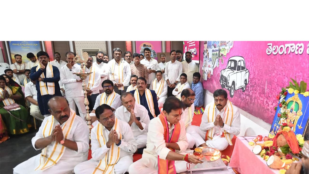 Bharat Rashtra Samithi working president KT Rama Rao (KTR) on Thursday participated in Panchanga Sravanam (traditional almanac reading) programme on the occasion of Sri Parabhava Nama Samvatsara Ugadi at Telangana Bhavan. MLAs, MLCs, MPs, and senior BRS leaders participated in the event.