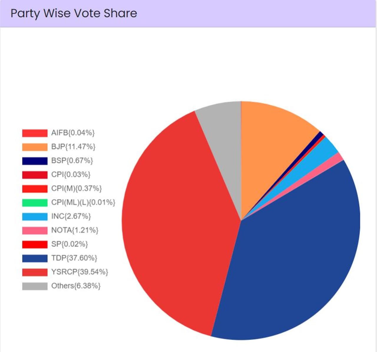 The BJP had three seats, the YSRCP four, and the Chandrababu Naidu-led TDP led sixteen of the twenty-five seats in Andhra Pradesh.