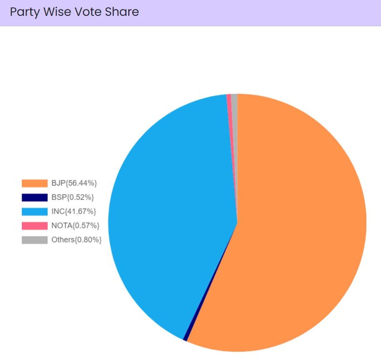 In Rajasthan and Haryana, the Congress—part of the opposition INDIA Bloc—was leading or winning 99 seats, up from 52 in 2019. This was eating into the BJP's share. Over 200 seats were won or held by the INDIA Bloc.