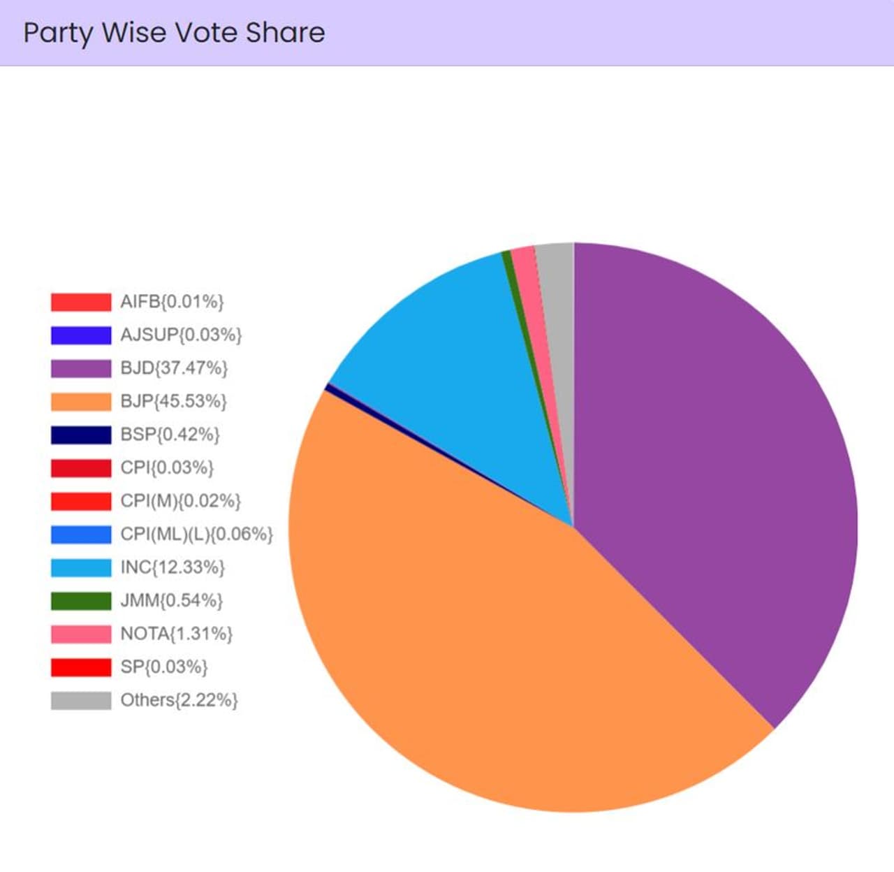 The ruling Biju Janata Dal had just one seat in Odisha, while the BJP was dominating 19 of the state's 21 seats. Additionally, it was leading in 76 of the 146 seats in the Odisha assembly elections, a success in a state it had never been able to win.