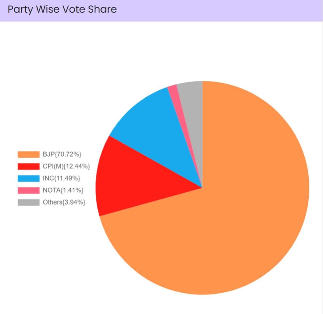The BJP did make gains in Telangana, where it was leading in eight seats, and Kerala, where it won a seat for the first time in a state where the Congress and the Left are the main political forces. The lotus blossom helped popular Malayalam actor Suresh Gopi win the Kerala seat of Thrissur.