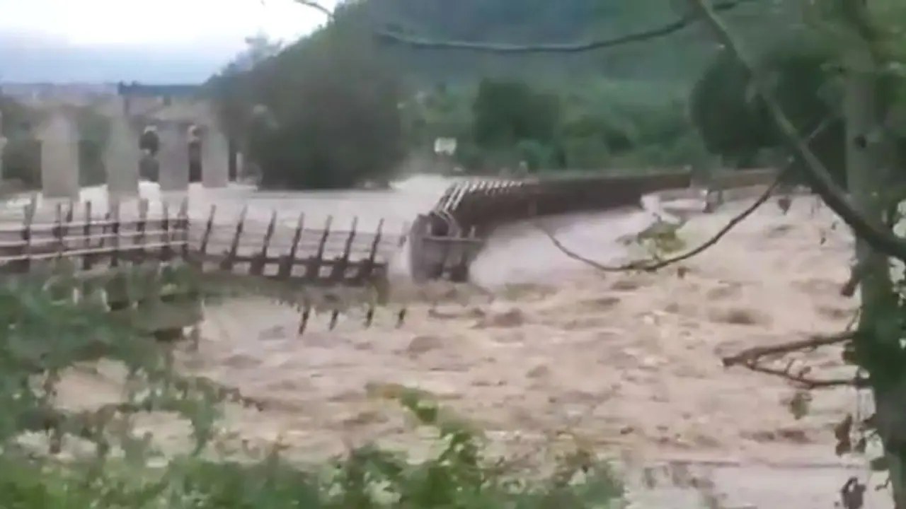 A video of a bridge collapsing and being washed away due to the strong force of water from an overflowing dam goes viral.