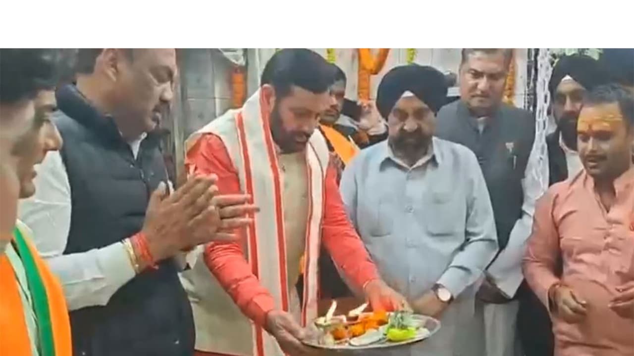 Haryana Chief Minister Nayab Singh Saini on Sunday performed "Jalabhishek" at the Naleshwar Temple in Nuh on the occasion of Shivratri. The Chief Minister congratulated the people of the state on the auspicious occasion of Mahashivratri.
